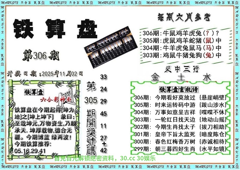 | 304期 | 0.2.3 | 2.3.5.6.9 | 开:马48错 |