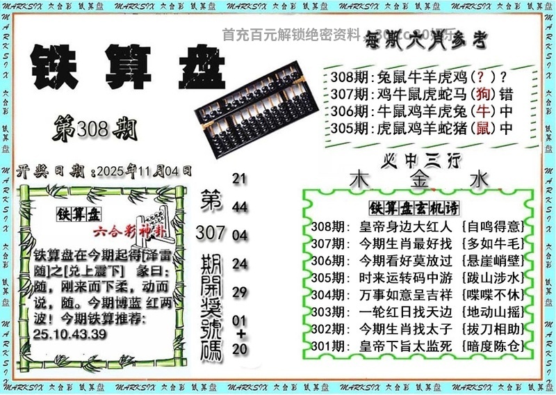 | 308期 | 0.1.2 | 1.4.5.6.9 | 开:兔39中 |